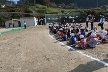 出場する選手への激励の言葉として、西臼杵地区の代表選手であることの自覚と応援してくださる保護者や地域の皆様へ感謝すること、そして上野プライドもって試合に臨むことを話しました。