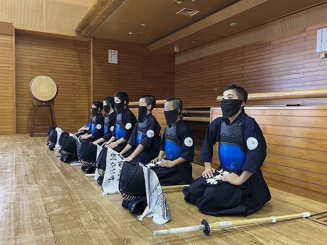 上野中剣道部は男子団体戦に出場し、予選リーグを2勝1敗で勝ち上がり決勝トーナメントに進出しました。