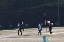 今日は男子団体戦です。練習会場では試合前の最後の練習が行われています。