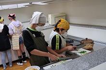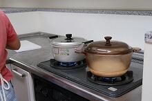 小学5年生が家庭科の授業で、鍋を使った炊飯と味噌汁の調理をしました。使ったお米は自分たちで田植え、稲刈り、脱穀をしたものです。脱穀には千歯こぎを使いました。