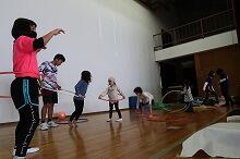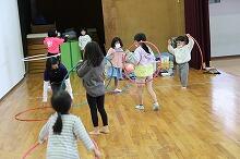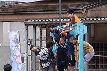 応援に来ていた子どもたちは、体育館のステージで工夫しながら遊んでいました。