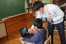 小学6年生と中学3年生は、卒業アルバムに使う個人写真や授業中のようす写真を撮ってもらいました。