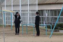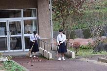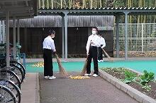 今朝の上野は曇り空ですが、昨日ほどの寒さは感じません。運動場には追いかけっこをしている低学年の児童や花壇の草取りをしている高学年の児童、落ち葉を集めて掃除をしている中学生の姿があります。