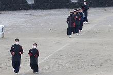 そんな寒さの中でも中学生は部活動の練習を頑張っています。-2℃の運動場でランニングやウォーミングアップをしていました。