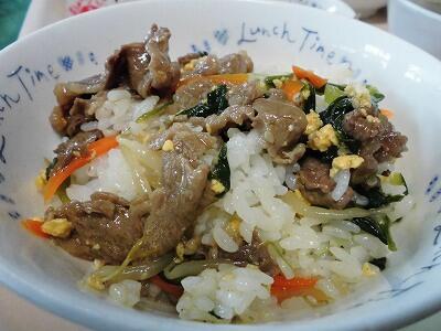 今日は、ぬくもりランチでした。高千穂牛ビビンバです。ご飯と混ぜてみました。