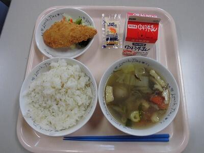 かんぱちは、大きな切り身が竜田揚げになっていて、一人1枚ずつありました。