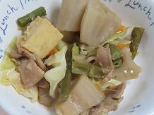 奄美の鶏飯(けいはん) れんこんと豚肉の甘辛炒め 牛乳