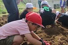 11月2日(水)、小学1•2•3年生は芋掘りをしました。これまでに自分たちで苗(蔓)を植え、草取りもしてきました。