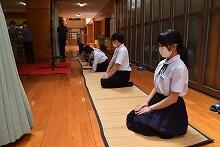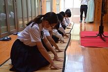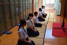 6月3日(金曜日)、上野中学校では「礼法指導」を行いました。講師は、上野地区在住の茶道の先生です。今回の礼法は、茶道の作法を学びながら、正しい礼の仕方や座り方などを身に付けるだけではなく、おもてなしの心や相手を敬う心を育む機会にもなりました。