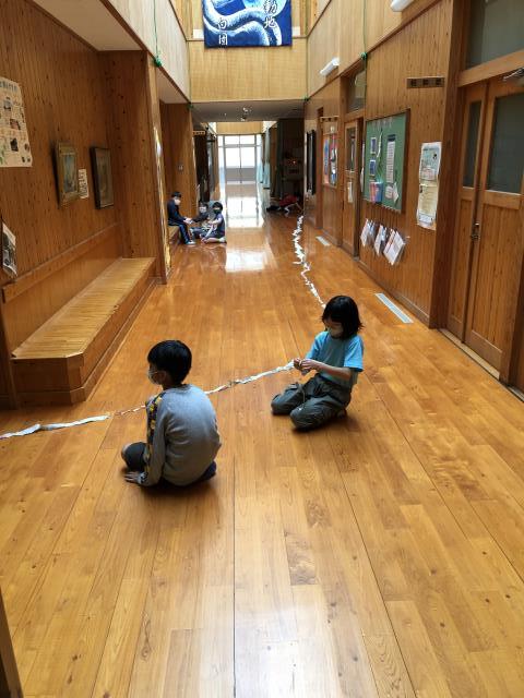 各教室では、トランプや百人一首、新聞紙を長ーくつなげたりなど、こちらも子どもたちの笑顔が見られました。