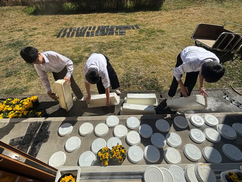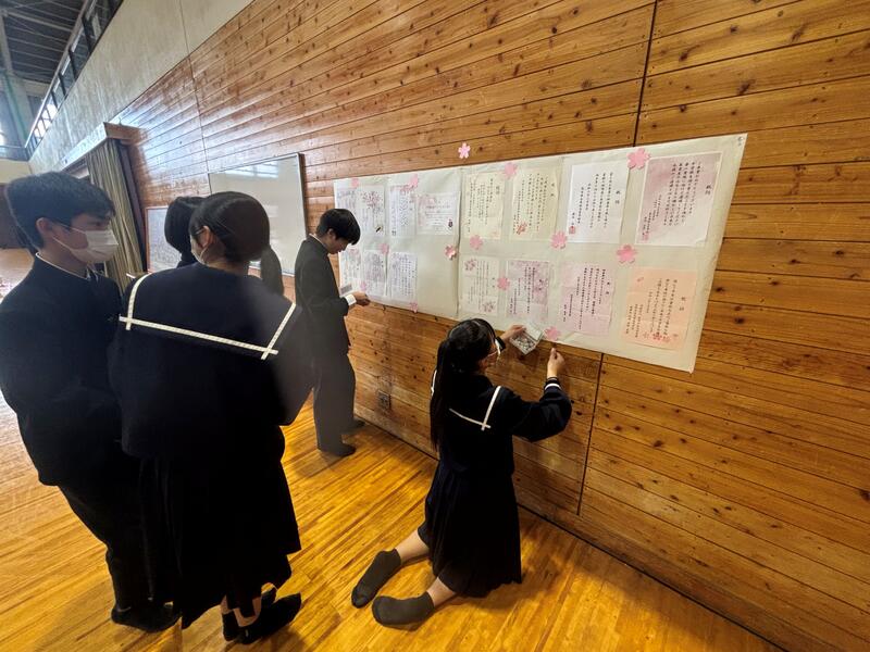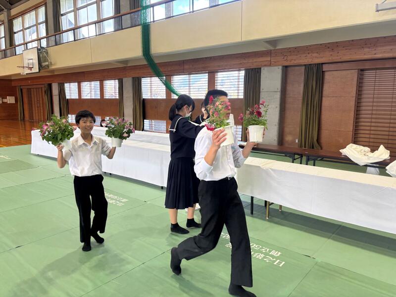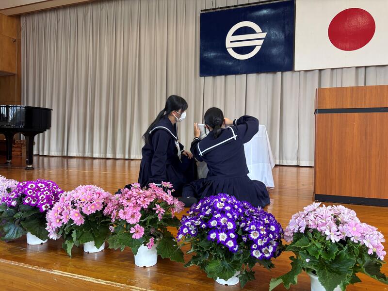 3月13日(金)午後、16日の卒業式に向けて1、2年生が準備を行いました。式場の設営