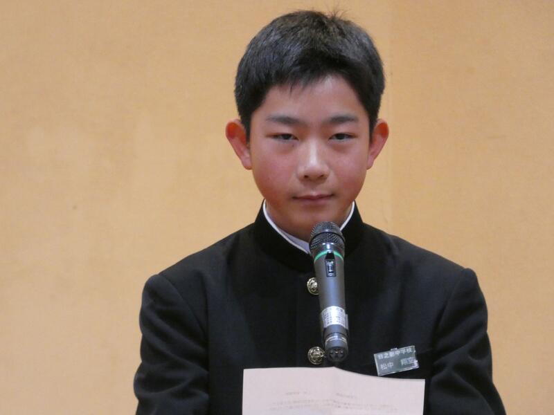 1月8日(木)3学期の始業の日を迎えました。大清掃の後、始業式を行いました。1年代表の黒木瑛仁さん、2年代表の松中翔空さん、3年代表の濱田彩瑛さん、生徒会代表の甲斐大河さんが新年の抱負を発表しました。