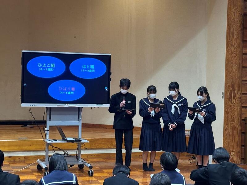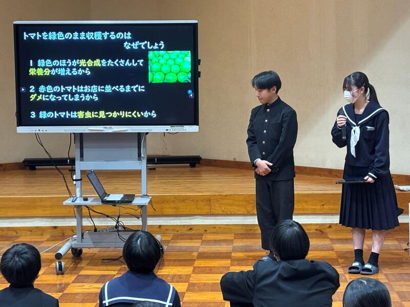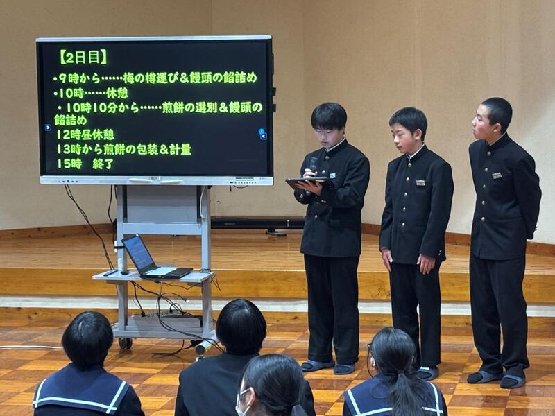 1月30日(金)、第4回学校参観日がありました。1年生は総合的な学習の時間で学んだことを発表する「日之影の魅力発信発表会」を行い、2年生は職場体験学習発表会を行いました。