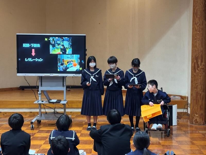 1月19日、給食感謝集会を行いました。宮水小の栄養教諭、給食室から2名お越しいただき感謝の言葉を伝えました。毎日美味しい給食ありがとうございます。これからもよろしくお願いします。