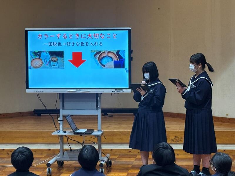 1月23日(金)2年生の総合的な学習の時間で、1月30日(金)の「職場体験発表会」に向けて、リハーサルを行いました。声の大きさやプレゼンを切り替えるタイミングなど、本番を想定して発表の練習をしました。