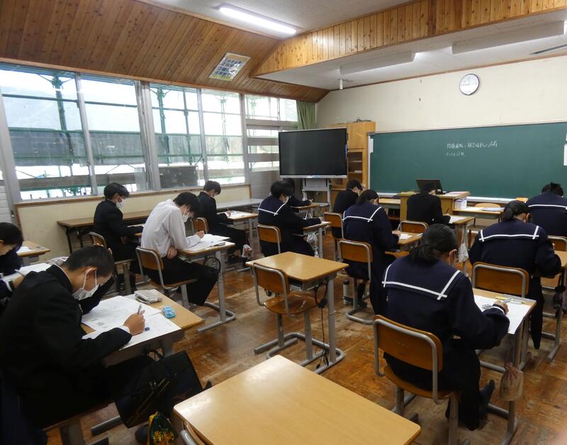 2学年では、1月に行われる地区実力テストに向けて、練習問題に真剣に取り組んでいます。