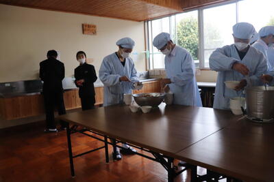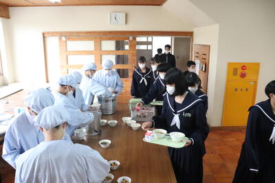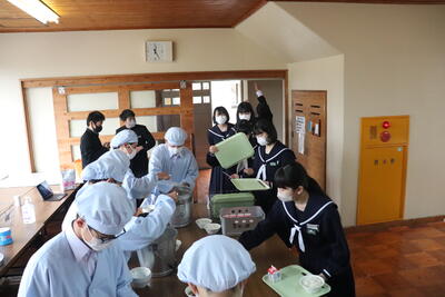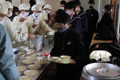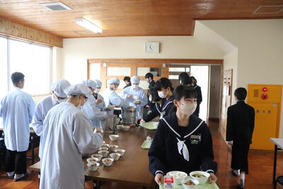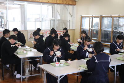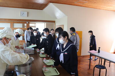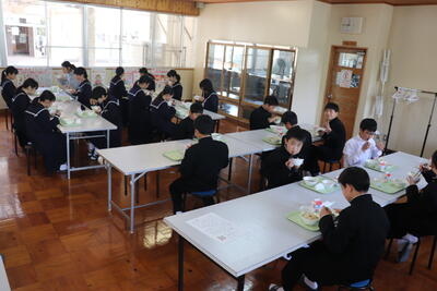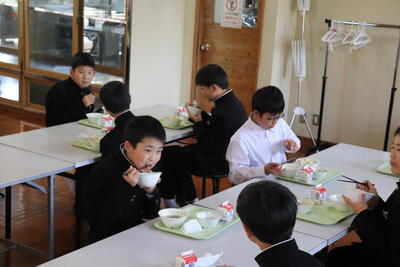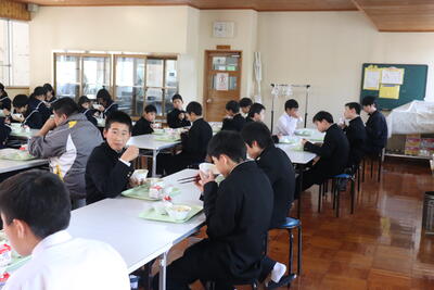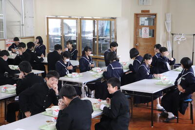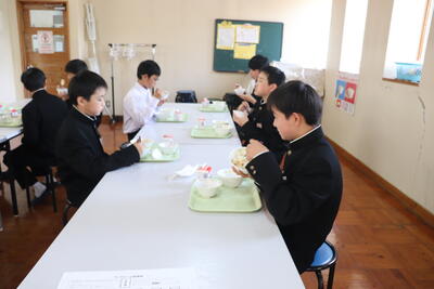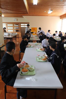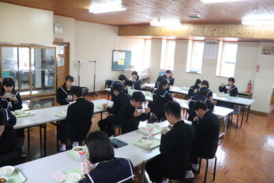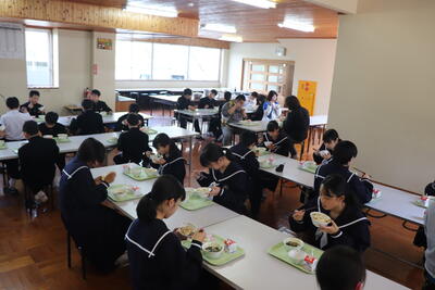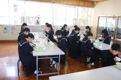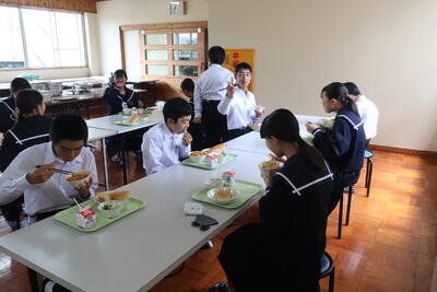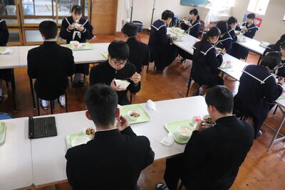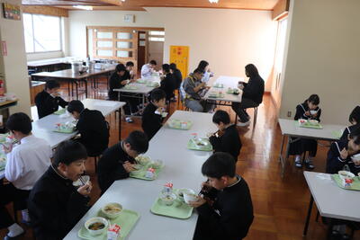 これまで本校の給食の時間では、新型コロナウイルス感染症の拡大状況から、黙食に取り組んできましたが、5月8日に5類感染症に引き下げになることにあわせて、黙食の緩和の段階的な取組を行うことにしました。