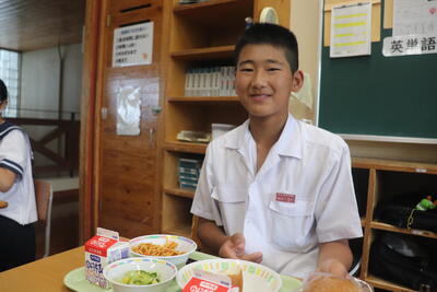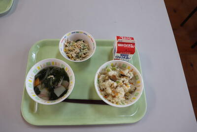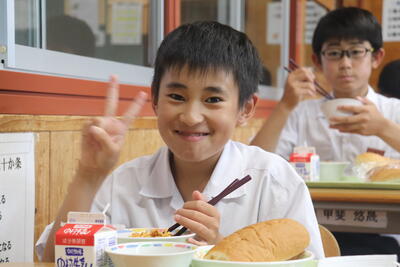 地産地消給食の日の1年生の給食の様子をお届けします。