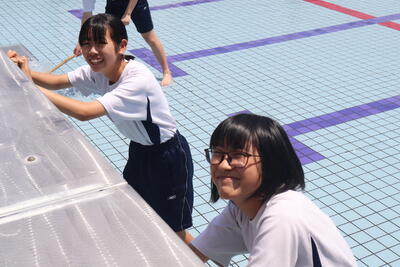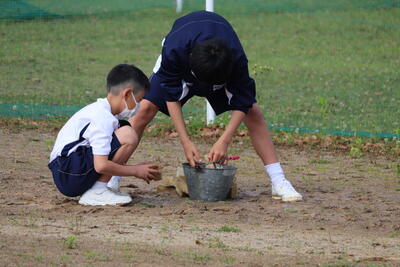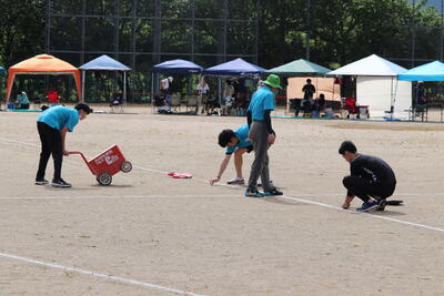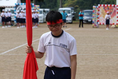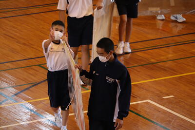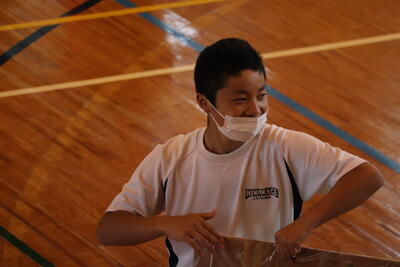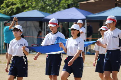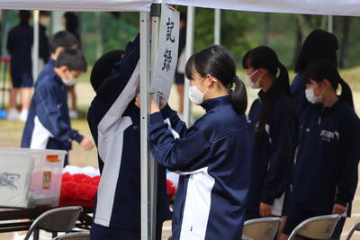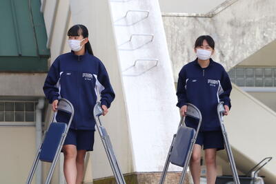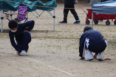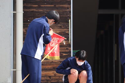 生徒の皆さんも会場準備をがんばりました!おかげさまで、予定どおり、体育大会を行うことができました。