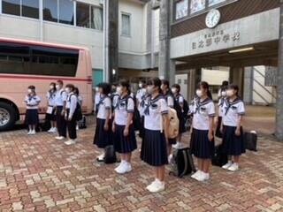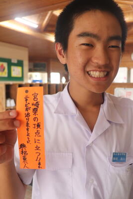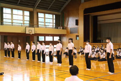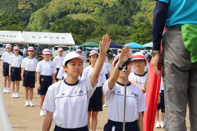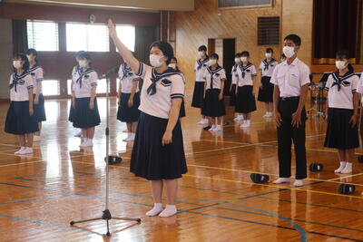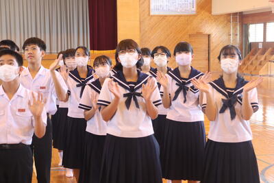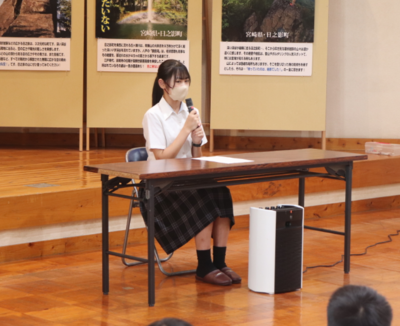生徒会を代表して、出場する生徒の皆さんに、山本紗葵さんから「日之影中、西臼杵の代表としての自信と誇りをもって最高のパフォーマンスをしてきてください」と激励の言葉が送られました。