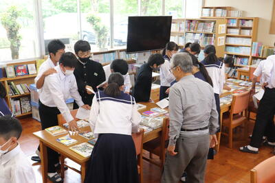 出版社の方を本校に招き、購入図書の選書を行いました。