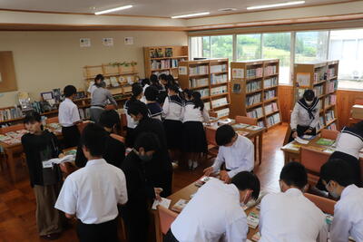 1学期に図書室の本を多く借りた上位5名の生徒たちに「多読賞」が送られました。