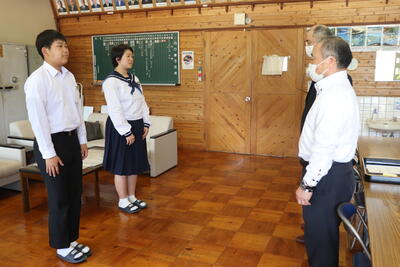 夏休みの思い出を校長先生に聞かれると、日之影の夏祭りに友達と行ったこと、吹奏楽部で演奏をしたことや、家族と旅行に出かけたことなど、夏休み充実して、楽しく過ごせた様子を話してくれました。