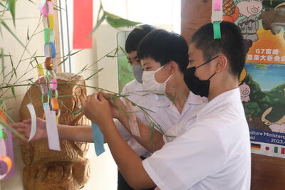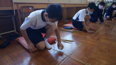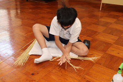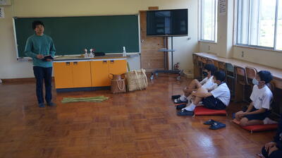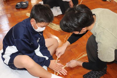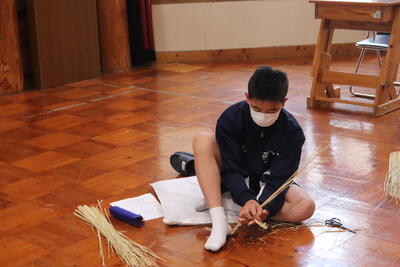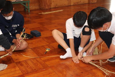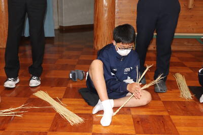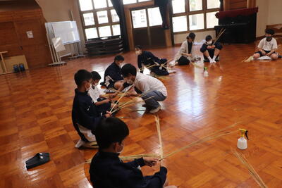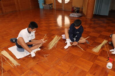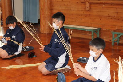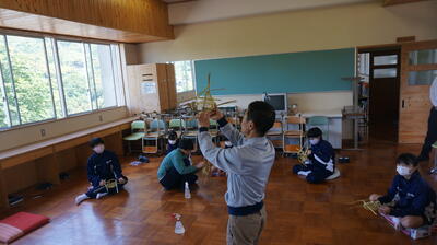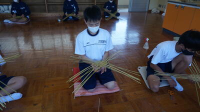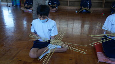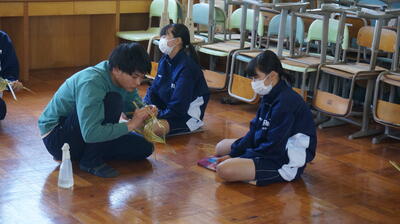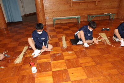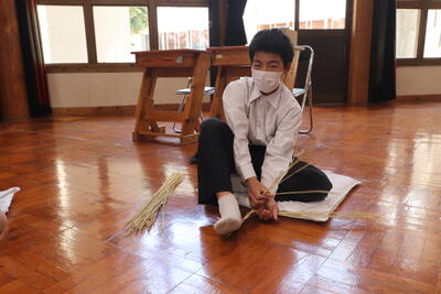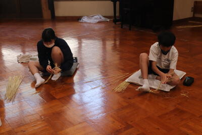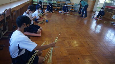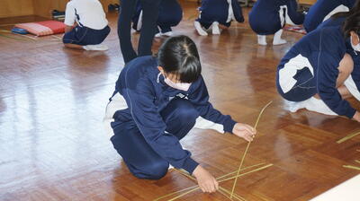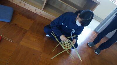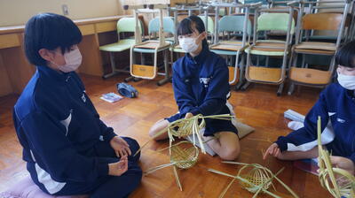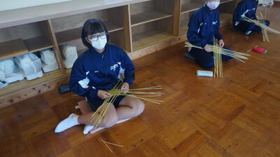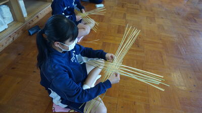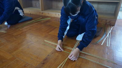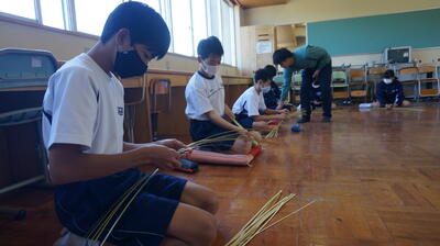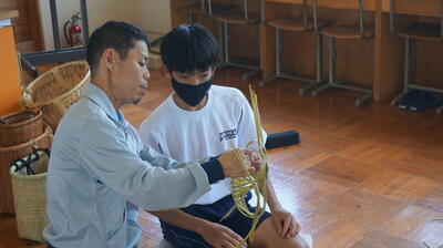 生徒は、事前に竹細工とわら細工のどちらかを選んで、体験活動を行いました。