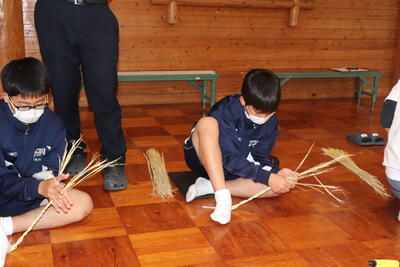 わら細工体験活動では、講師として、山木さんと小野満さんにおこしいただきました。
