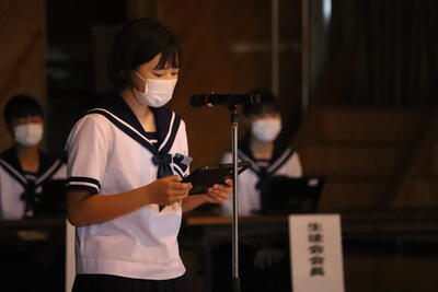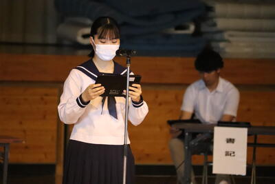 全校生徒を代表して、全校生活整備委員会委員長 甲斐 耀太(3年)くんと、第3学年生活整備委員長 佐藤 真優さんも出席しました。