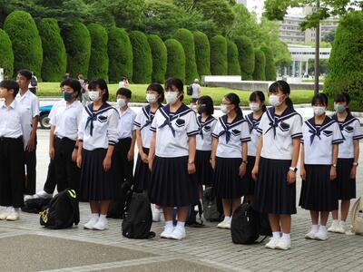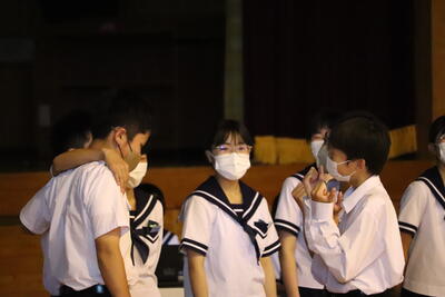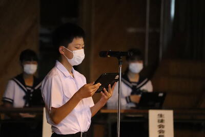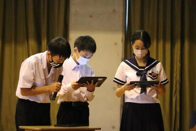 次に1学期の1番の思い出を話してくれました。1年生は入学して最初のテストがあったこともあり、「定期テストが一番の思い出です。合間合間に勉強を頑張って、その成果が良い点数となって返ってきたのがうれしい」2年生からは、「修学旅行で、被爆体験の貴重な講話を聴き、平和の大切さをあらためて学ぶことが出来た。また、普段乗ることのない新幹線やバスなど公共の乗り物の乗り方やルールを学べた。」と話してくれました。