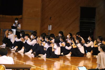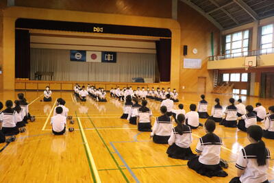今日の生徒活動の時間に、第74回宮崎県中学校総合体育大会選手激励式及び宮崎県吹奏楽コンクール激励式を行いました。