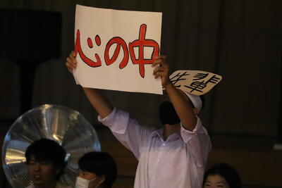 生徒会長の甲斐 恋奈さんの合図のもと、みんなでメッセージを発表し、それを撮影しました。