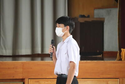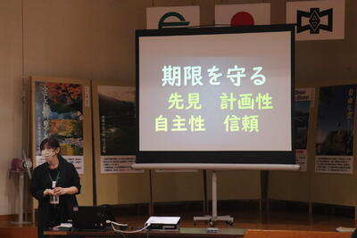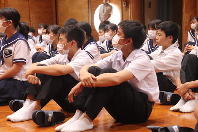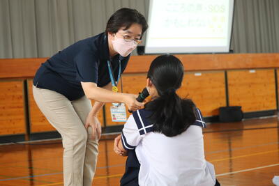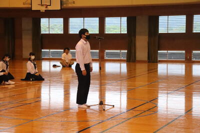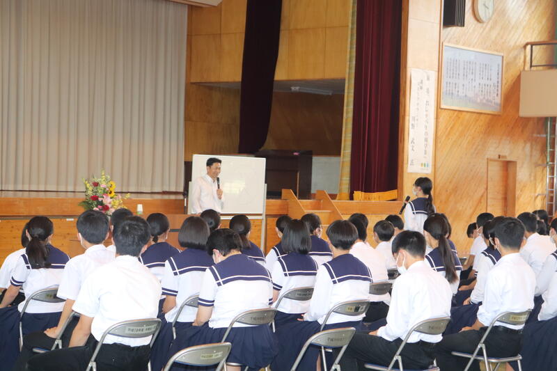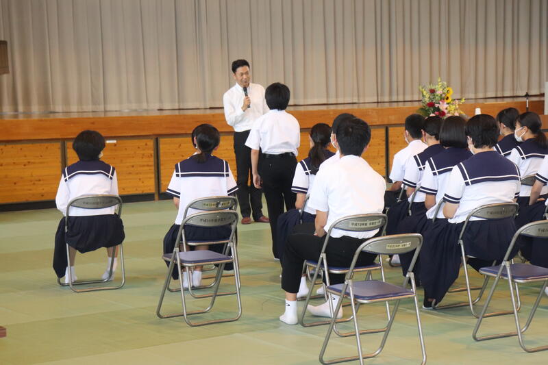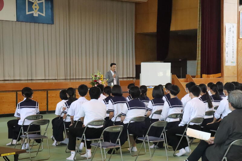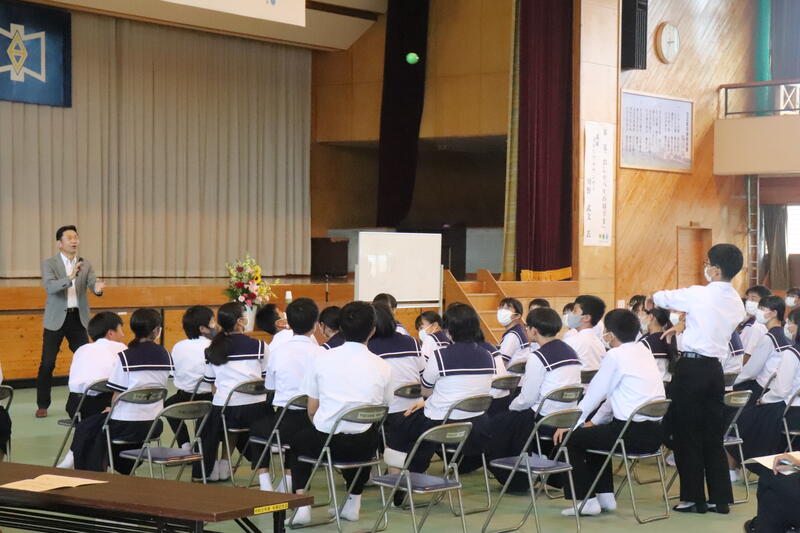 生徒を代表して、保体給食委員長の梅田大虎くんが「友達が何か困っていたり、助けを求めていたりするときには話を聞いて、一緒に解決してあげられるような存在になりたいと思いました。」と感想を述べました。
