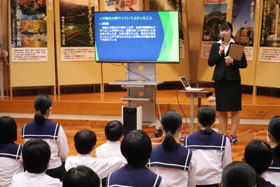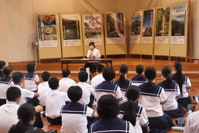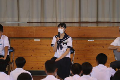 9月4日、本校卒業生の倉本小雪(延岡県立星雲高校3年生)さんが、本校を訪れ、「卒業生 先輩からの夢を聞く会」として、全校生徒に話をしてくださいました。