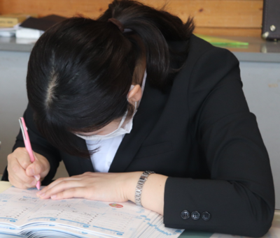 3年生からは授業で分からないところをお互いに教え合いができていたのが良かった、改善点としては私語が多くなってしまうところもあったので気を付けたい。」と1学期を振り返ってくれました。