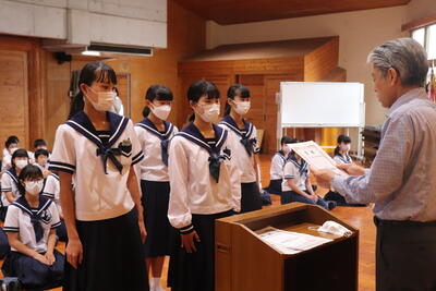 また、先日の吹奏楽コンクールで銀賞を受賞した吹奏楽部の生徒たちに賞状が送られました。