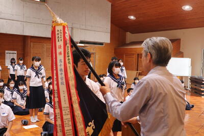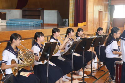 次に、吹奏楽部が、日ごろの練習でうまく行かないこともあったが本番では心を一つにし、演奏したいとコンクールに向けての意気込みを述べてくれました。