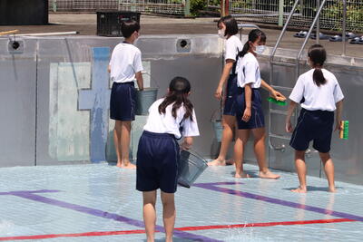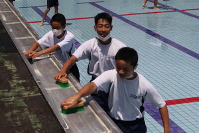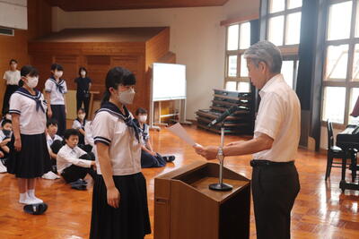 このように、1学期に数多くの成長を見せてくれた皆さんに無限大の可能性を信じています。明日からも、この夏休みにしかできないことにチャレンジし、生活のリズムを崩すことなく、時を守り、規則正しい生活をして欲しいものです。また、お家では、家庭の一員としてお手伝いをしてください。有意義な夏休みを送ってください。」2学期始業式には、全員が元気で登校してくれることを願っています。」とお話しくださいました。