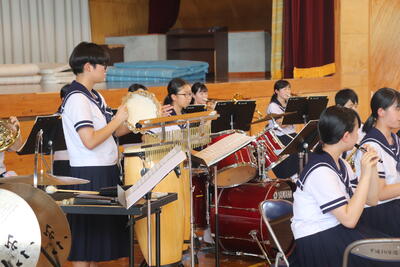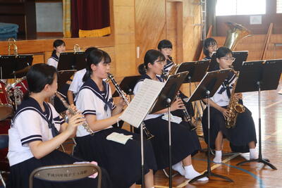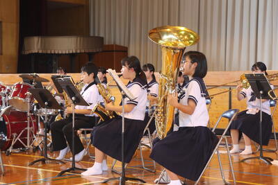 普段なかなか見ることのできない演奏中の真剣なまなざし、また吹奏楽部の演奏をしっかりと聴ける機会がいままでなかったこともあり、生徒たちもとても熱中して聴いていました。