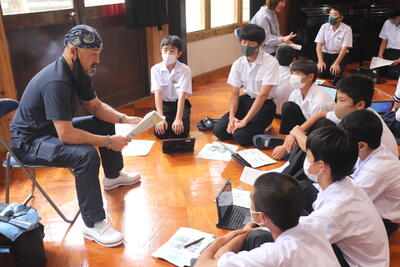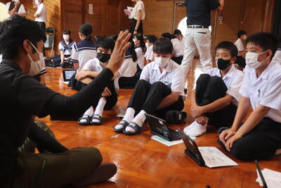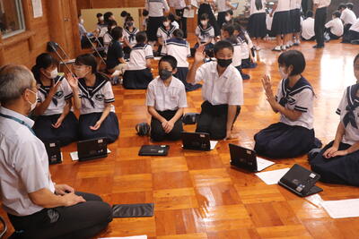 早央里先生からは、夏休み中、スマホを扱うときの注意点や危険性について、「一度ネット上にアップした画像や動画は簡単に消し去ることはできない、軽い気持ちでネット上にアップしたものが、友達を嫌な気持ちにさせたり、もしかしたら犯罪に巻き込まれたり、ということがあるかもしれない。そのような危険があることを十分理解して使用するように。」とお話がありました。