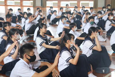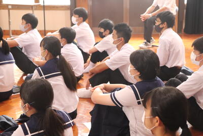 そして「悩みをもつことや、それに対してイライラしてしまうことはなにもおかしいことではなく順調に体が成長している証拠だから安心していいんだよ。」ということもおっしゃっていました。また、自分ではどうしようもないイライラの対処方法や、不安の解消方法を教えてくださったり、生徒に「実際にみんなはどのような方法でストレスを発散しているか。」と聞いてみたりもしました。