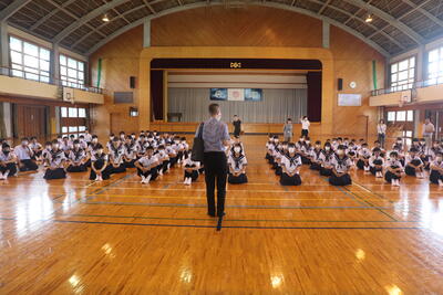 体育館に全校生徒が集合しました。