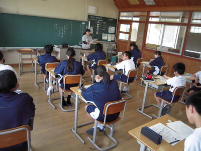 日之影中学校には、1名のALTが配置されています。英語の授業はもちろんのこと、学校生活全てにALTの先生が活躍されています。日常会話を楽しむ生徒が多くいます。