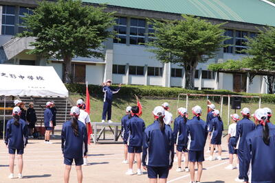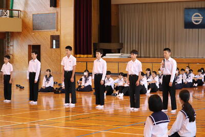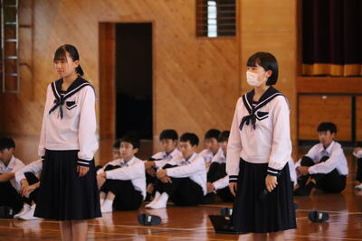 西臼杵地区中学校総合体育大会選手激励式を行いました。その大会には、陸上部、野球部、ソフトテニス部が出場します。各部活動のキャプテンがその大会にかける想いを表現してくれました。全校保体委員長が激励の言葉を贈ってくれました。