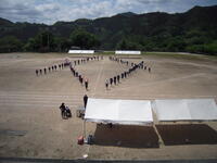 日之影中学校の伝統的な体育大会プログラムの一つに「花輪棒体操」があります。その様子を連続写真でお届けします。