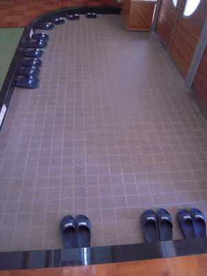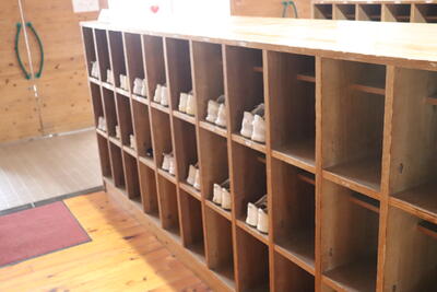 靴箱に靴を入れる時には、かかとを靴箱に揃えて入れます。