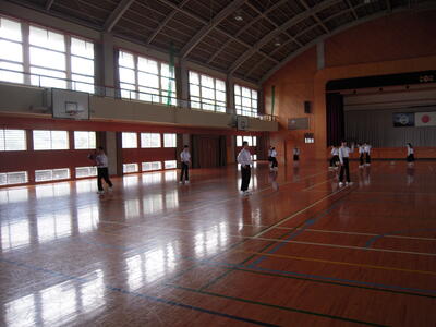 日之影中学校の体育大会の伝統種目の一つに「花輪棒体操」があります。全校生徒がリズム合わせ、心を一つにして行進します。練習を重ねると、集団の美が際立てってきます。