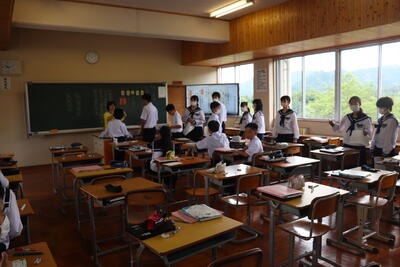 今日は、朝から雨が降り町内の一部では停電があったようでした。中学校の生徒の皆さんは、停電も無くいつも通りに学校生活を送っています。