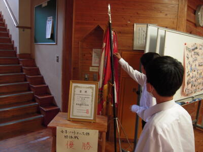 優勝旗をいち早く見つけた生徒の皆さんが、早速、やってきました。